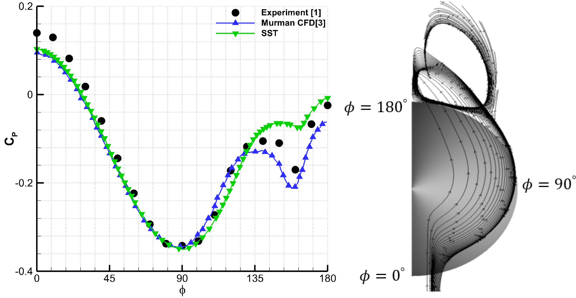 - This paper present an enhanced computational analysis of tangent-ogive cylinder projectile at high angles of attack, incorporating a rotation/curvature(RC) correction to the k-ω SST RANS turbulence model. The empirical constants in Menter’s RC correction are optimized using Bayesian optimization to improve surface pressure predictions, particularly on the leeward side. These constants are trained on Lamont’s experimental data for a projectile with a nose fineness ratio of 3.5 at an angle of attack of 20° and a Reynolds number of 4.0×106 based on diameter. The improved correction is then validated on Tinling’s experimental data, which involves a slightly shorter nose with fineness ratio of 3.0, and shows better agreement with the measured surface pressure distribution. - COLLAPSE